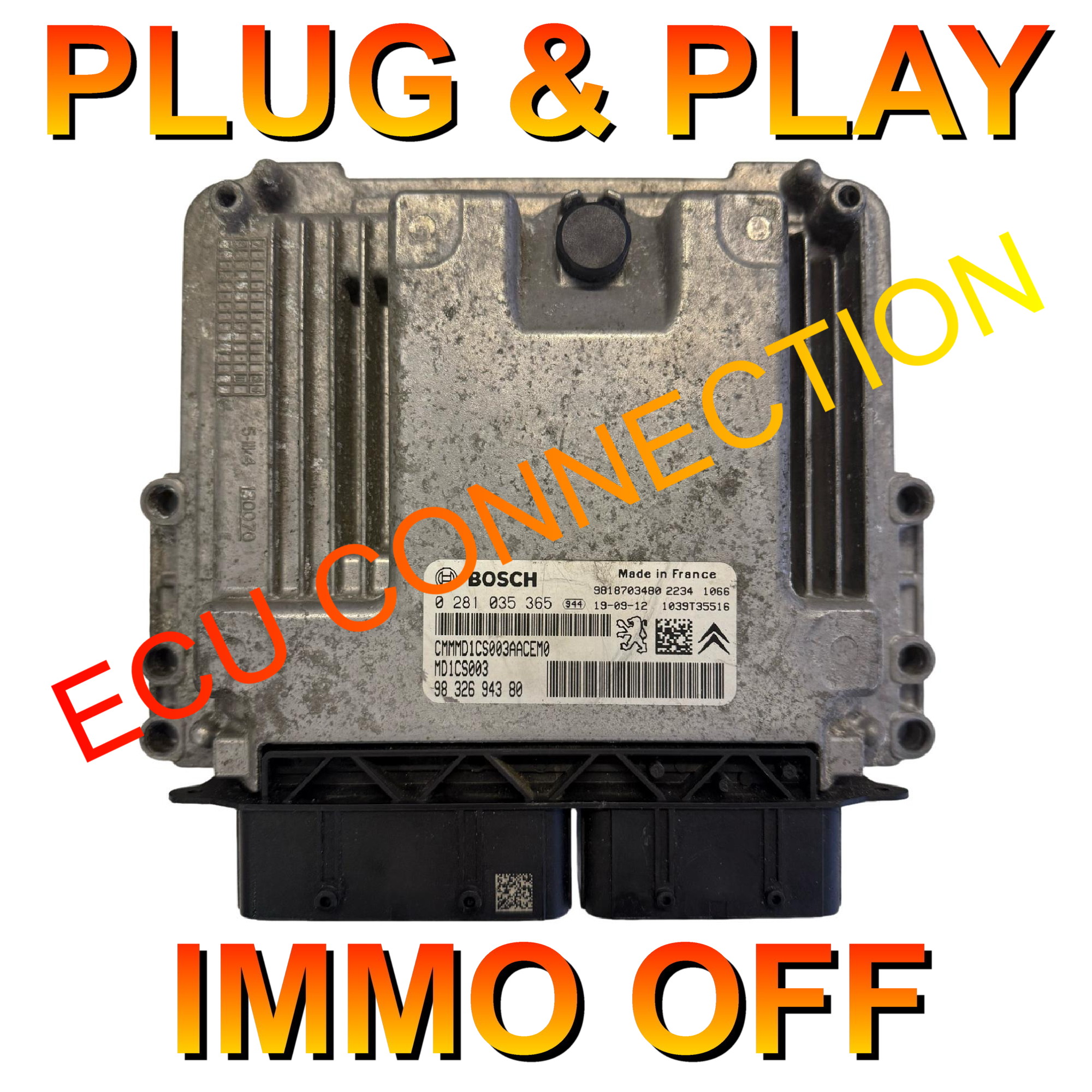 Peugeot Citroen Bosch ECU | MD1CS003 | Diesel | 0281035365 | 9832694380 | Plug+Play Immo Off by Emulator
